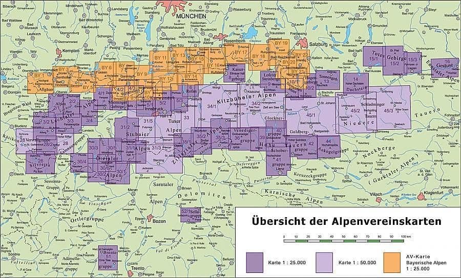 Alpine Club also produce maps for the German Alps shown in orange on the grid above. For more details CLICK HERE