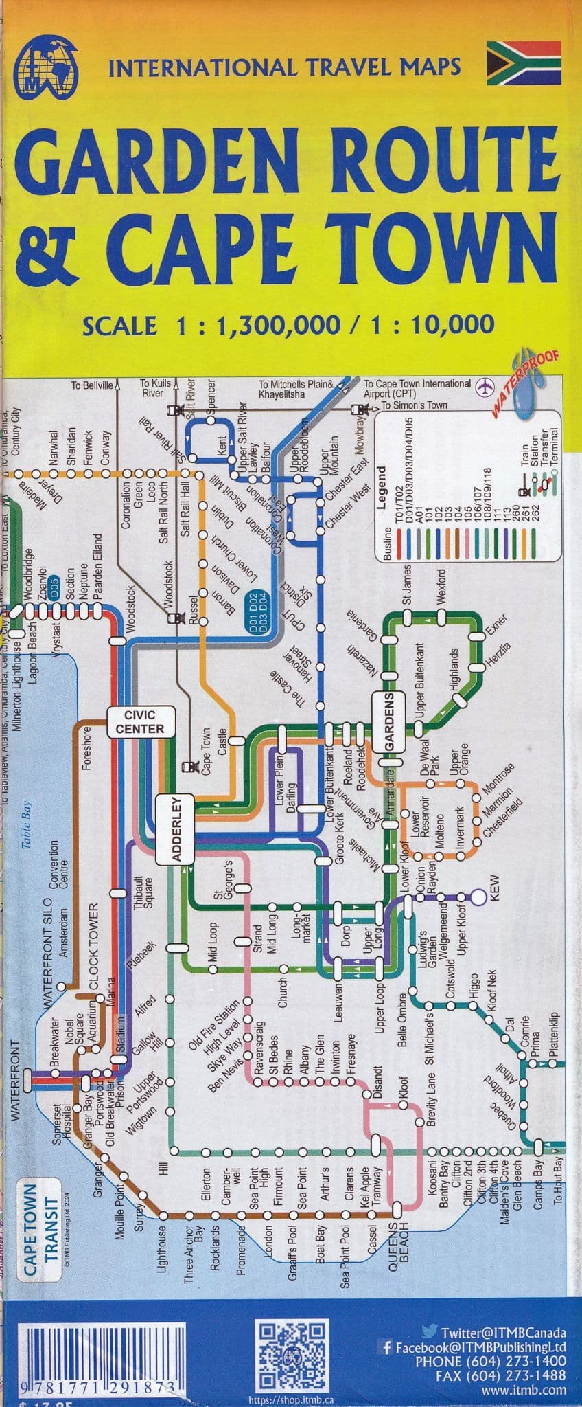 Lan and I travelled South Africas southern coastal route, known as the Garden Route a few years ago and found it fascinating. Shutdowns during the Covid upsurges in 2020 allowed Lan enough time to concentrate on producing an excellent map of Cape Town on tear-resistant Stone paper, covering the city in excellent detail, and a second full-sized map on the reverse side covering that portion of the country known as Cape Province; essentially, from Cape Town north to the Namibian border, east to the Transkei, and north to Potchefstroom. This encompasses the wine districts of Stellenbosch, the lovely towns of George and Knysna on the south coast, historic Port Elizabeth, the very interesting Transkei homeland, all of Lesotho, and the arid interior regions that resonate with history Graaff Reinet, Bloemfontein, Kimberley, and Upington. One not-to-be-missed experience is Addo Elephant Park; another is Grahamstown; still another is Cape Agulhas, the southernmost point of land in Africa. An excellent and much-needed travel map! Legend Includes: Roads by classification, Rivers and Lakes, National Park, Airports, Points of Interests, Highways, Main Roads, Zoos, Fishing, and much more...