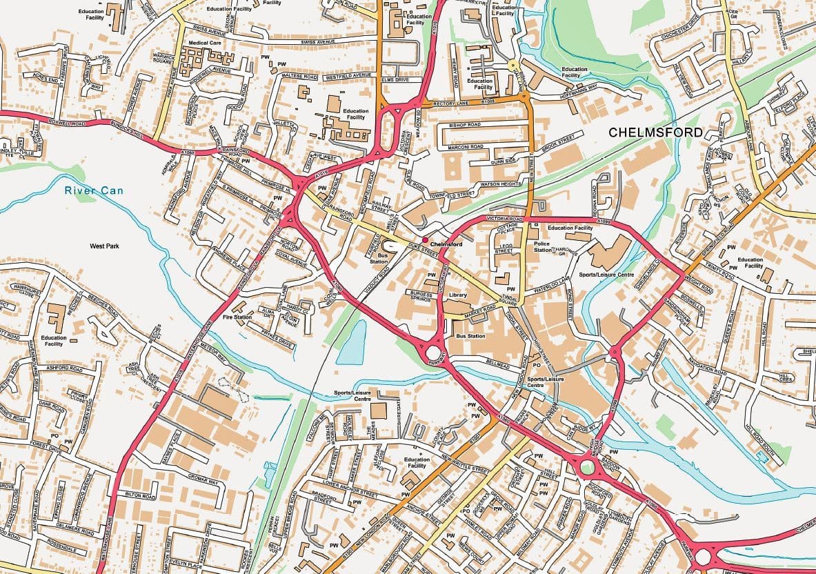 This Wall Map of Chelmsford shows detailed street level information including extensive street labelling. Ideal for planning of deliveries, home services, sales territories, real estate and much more.
