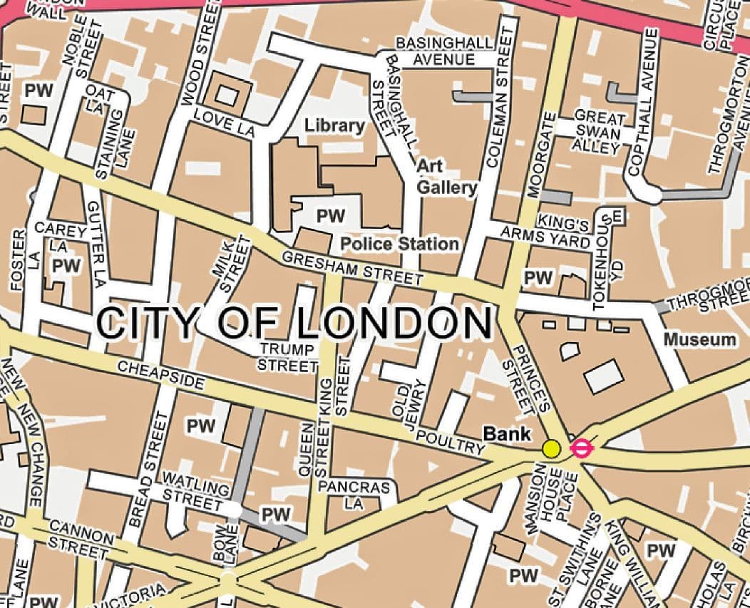 This wall map shows the outline of the London Borough in black and to highlight the Borough fades the map detail beyond.