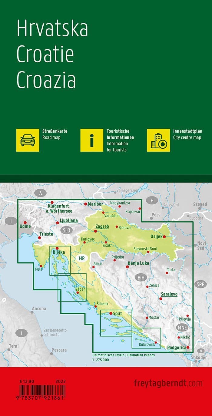 Places of interest are highlighted and the maps also show ferry connections on the Dalmatian coast.