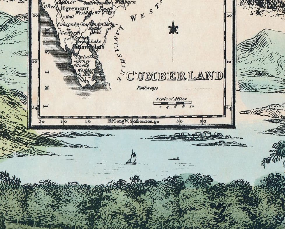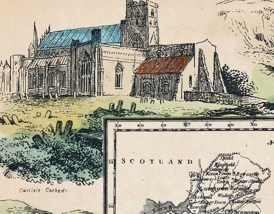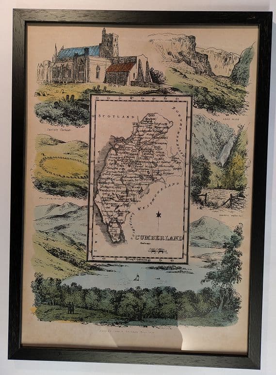 This is a Modern Reproduction A3 County Map with surrounding Vignettes.