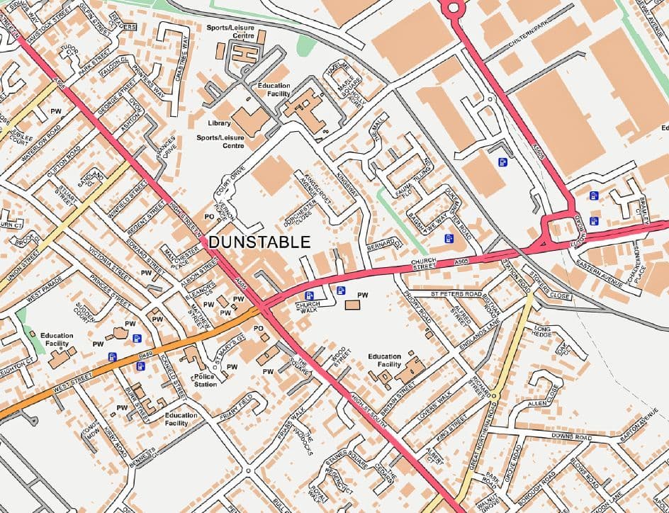 Dunstable Street Map - Flat Rolled