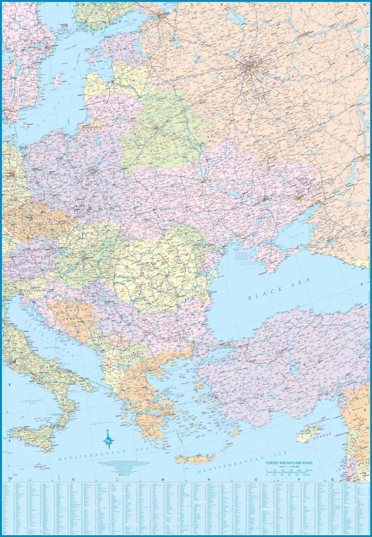 Covering the whole of Europe and indicating the Railway Network across the continent