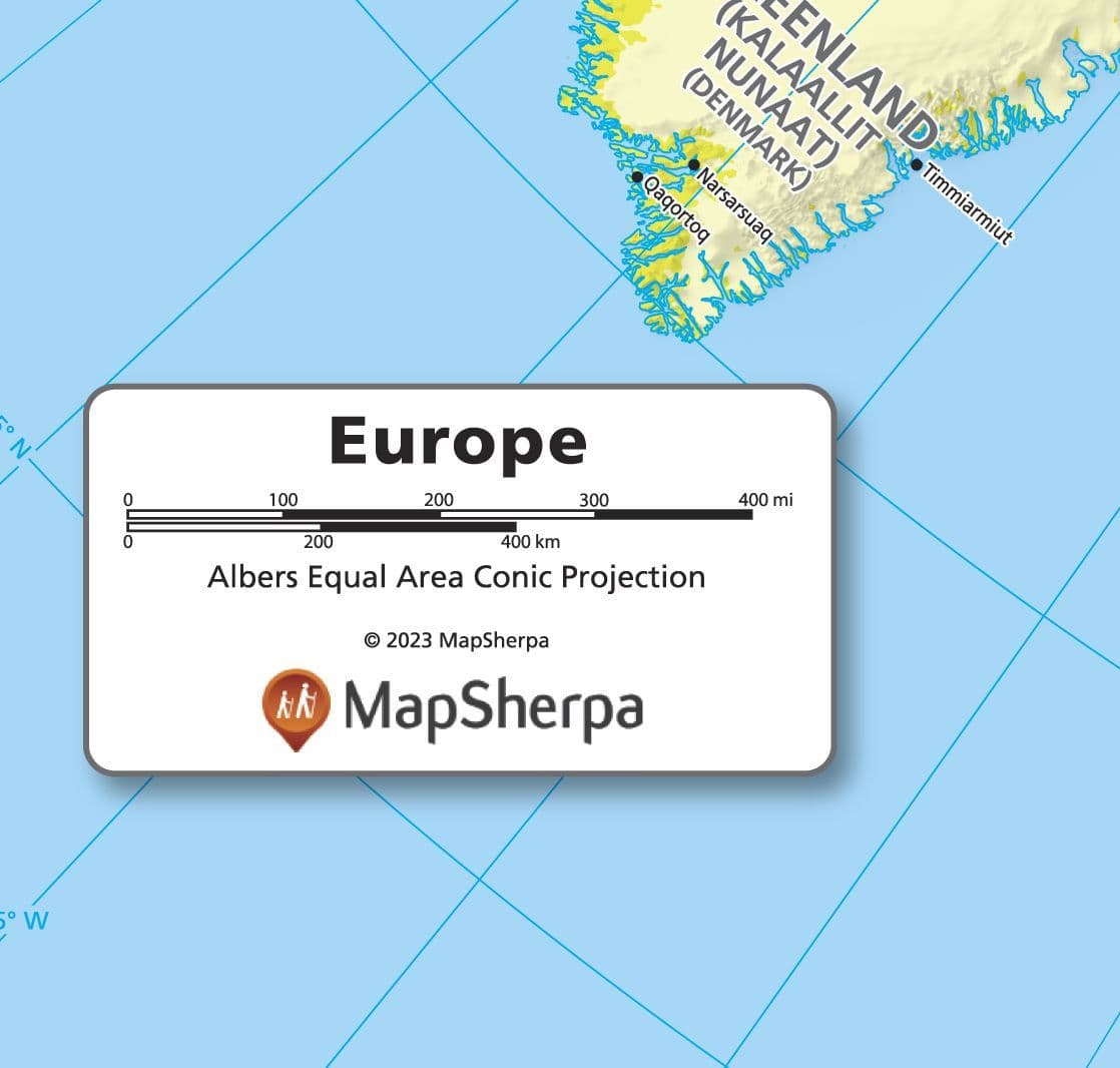 Explore the continent of Europe with this very Clear map published by MapSherpa.