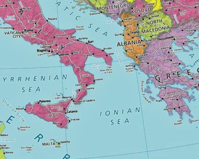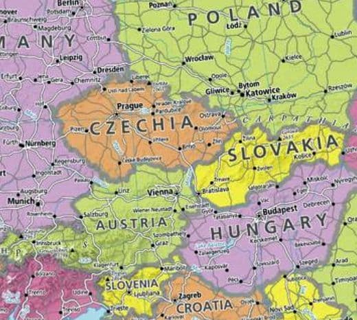 New and up-to-date, this Map shows all the countries that make up the continent. Stretching from the Atlantic Ocean in the west to Arctic Circle and beyond, to the Ural Mountains and the Mediterranean Sea.
