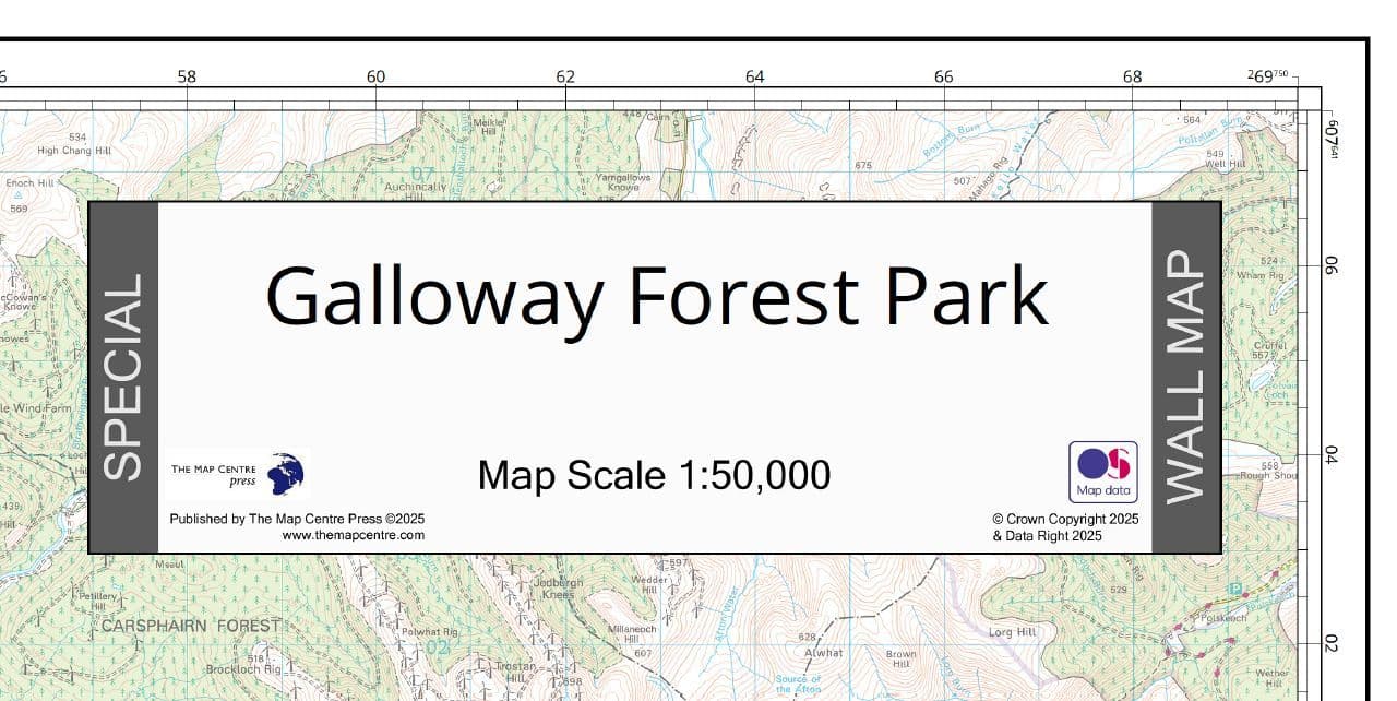 A Fantastic new wall map covering the whole of the Gallow Forest Park on a single sheet wall map. Using the detailed Ordnance Survey scale of 1:50,000 this map shows off the area in all it's splendour.