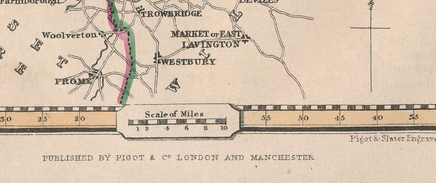 An attractive and detailed mid 19th century map with a triangular distance table of Gloucestershire along with a vignette of Gloucester Cathedral — which was published by Pigot & co. in A Pocket Topography and Gazeteer of England - London & Manchester: 1841.