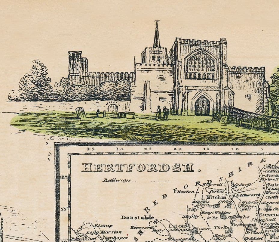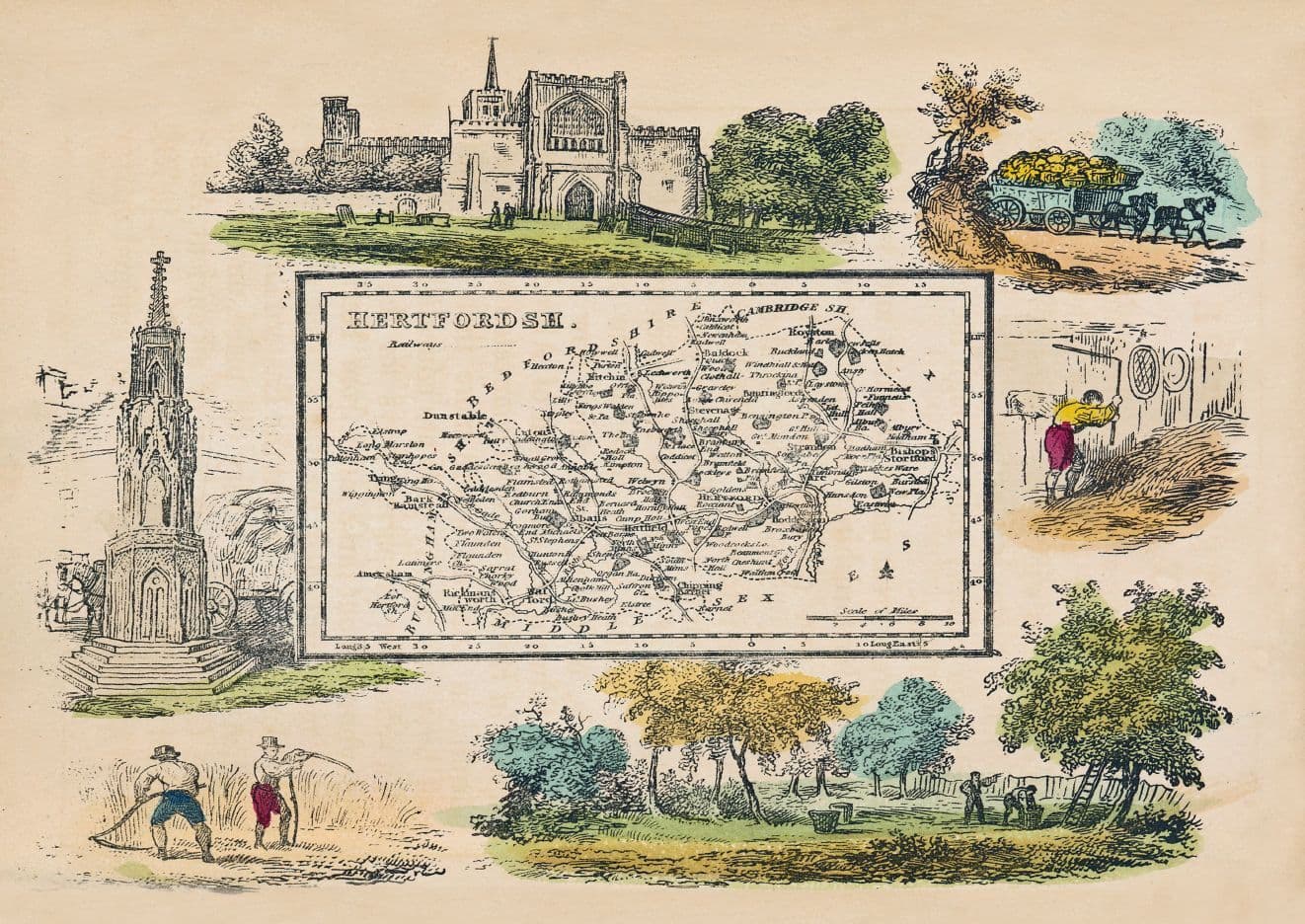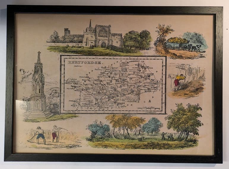 This is a Modern Reproduction A3 County Map with surrounding Vignettes.