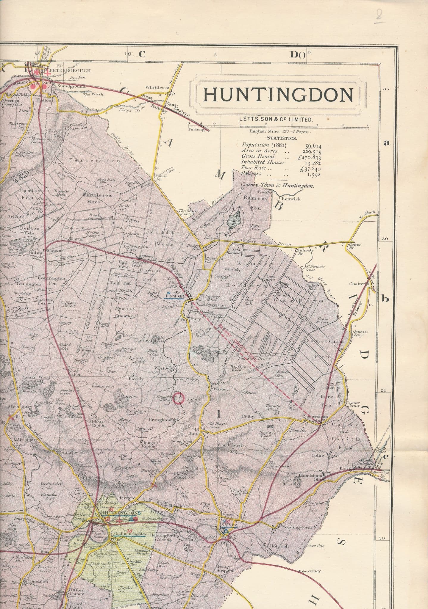 The map includes Census information from 1881 and includes railways and roads and some topography.