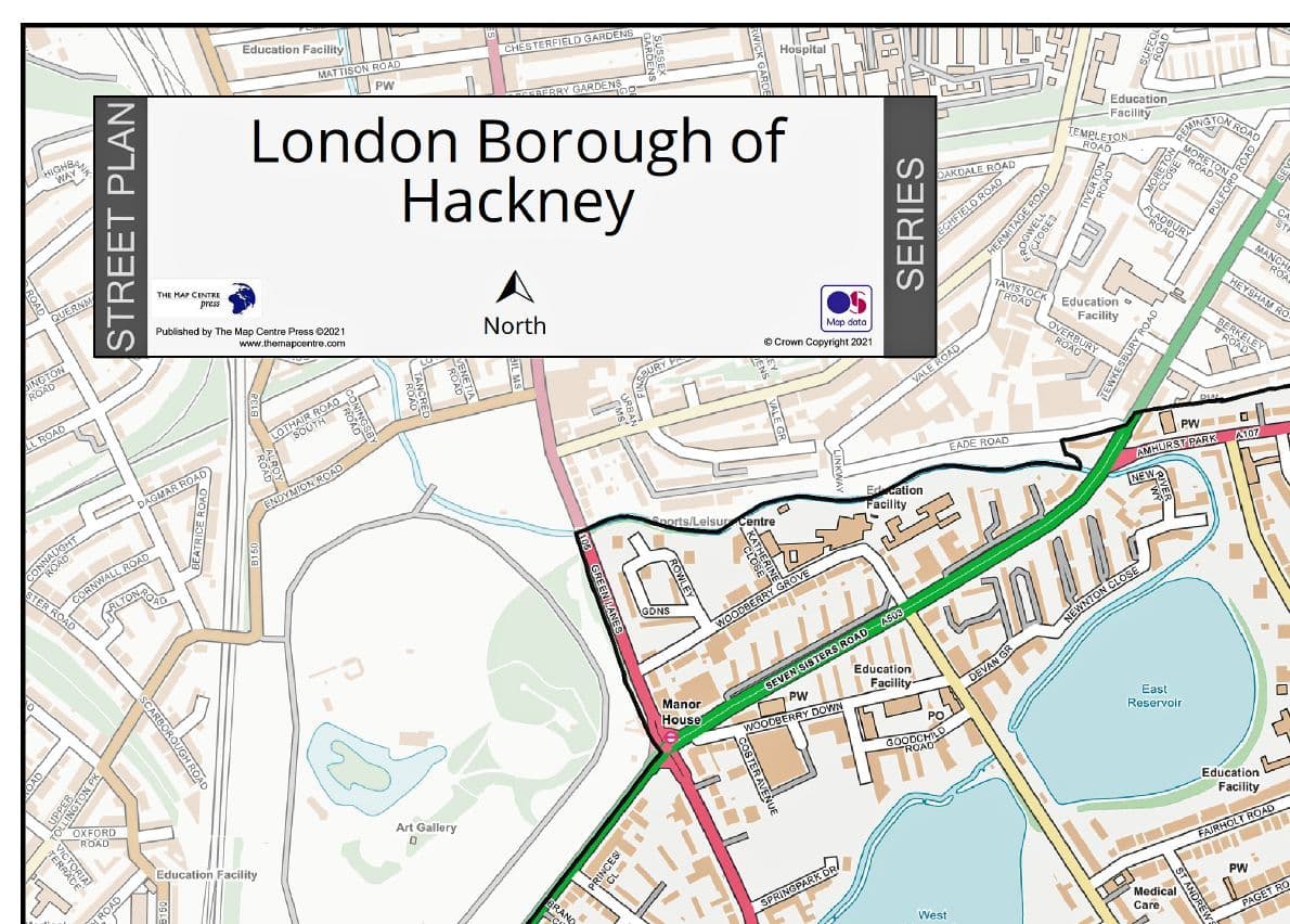This wall map shows the outline of the London Borough in black and to highlight the Borough fades the map detail beyond.