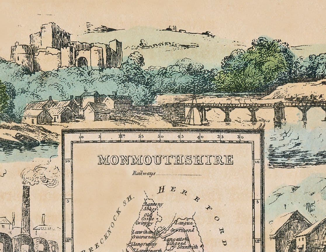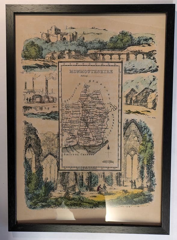 This is a Modern Reproduction A3 County Map with surrounding Vignettes.