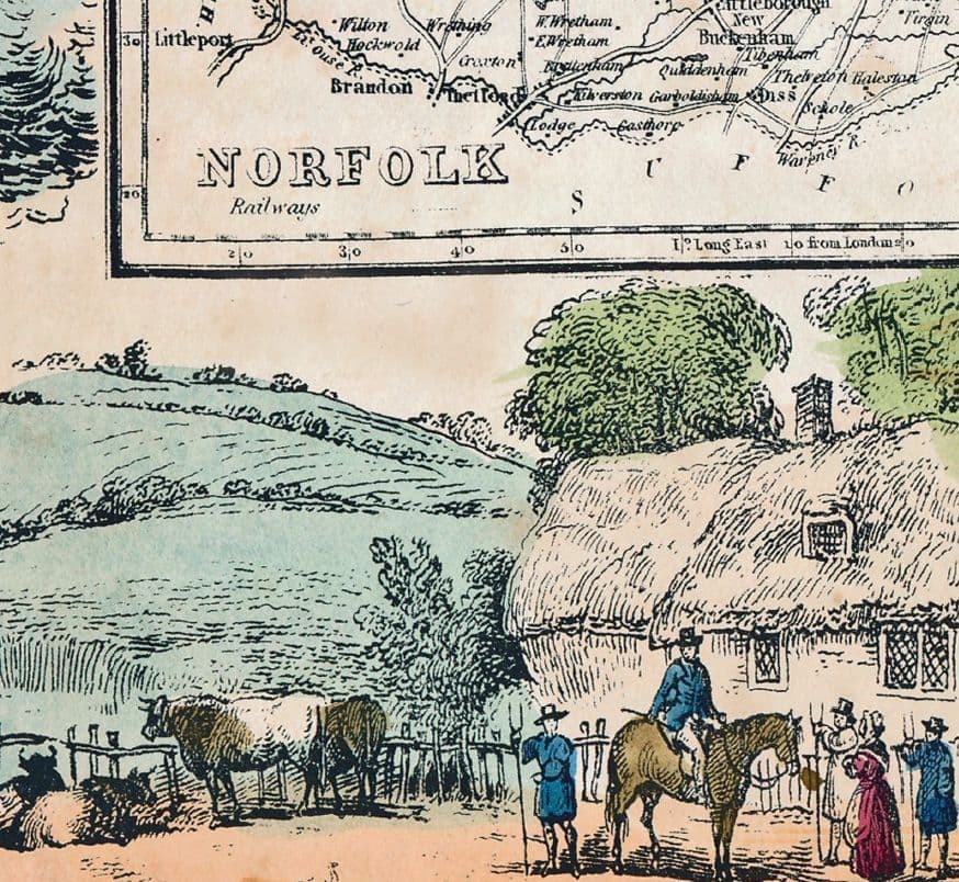 This is a Modern Reproduction A3 County Map with surrounding Vignettes.