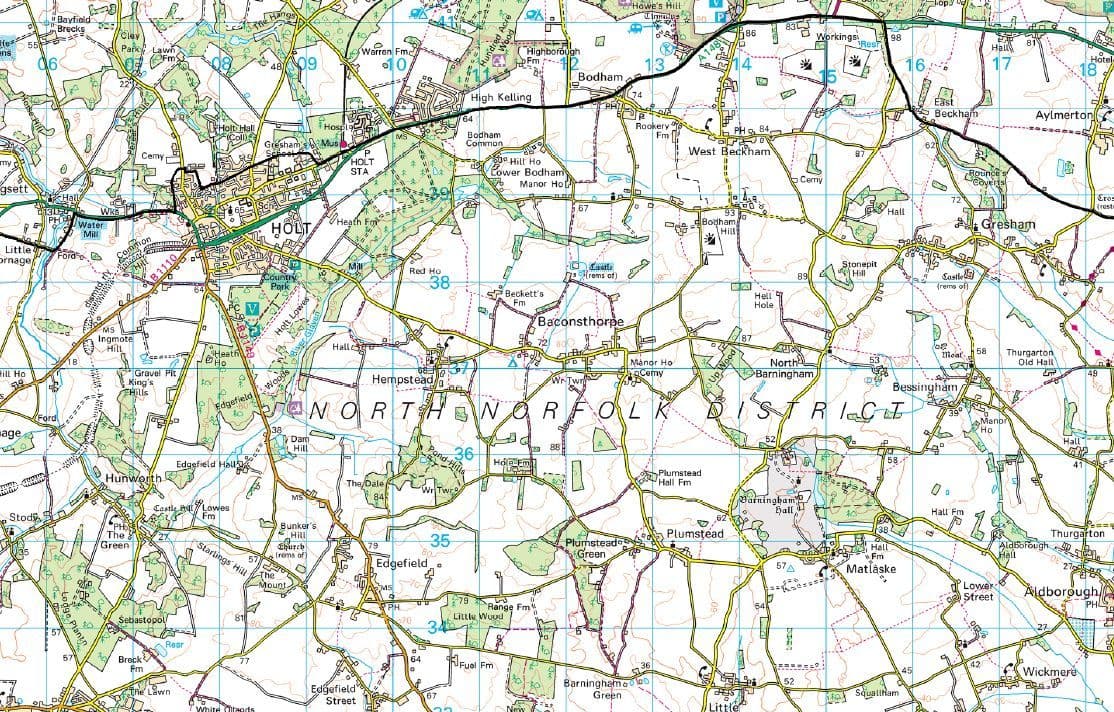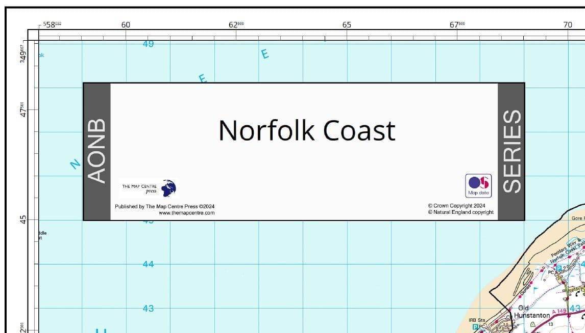 A wall map showing the area of the Norfolk Coast AONB. Using precise Ordnance Survey Landranger Mapping as the base we have overlaid the boundary of the AONB for a clear depiction of the area.