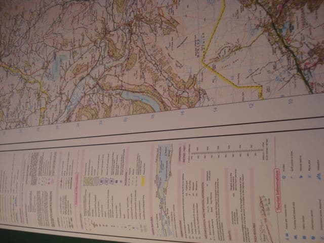 We use the Ordnance Survey Landranger, 1:50,000 data to produce the map and we print in-house.