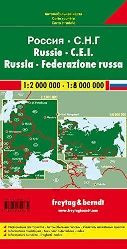 This double-sided map of Russia and CIS, with all of Russia and the CIS on one side at a scale of 1:8,000,000 and Western Russia on the reverse at a scale of 1:2,000,000 .