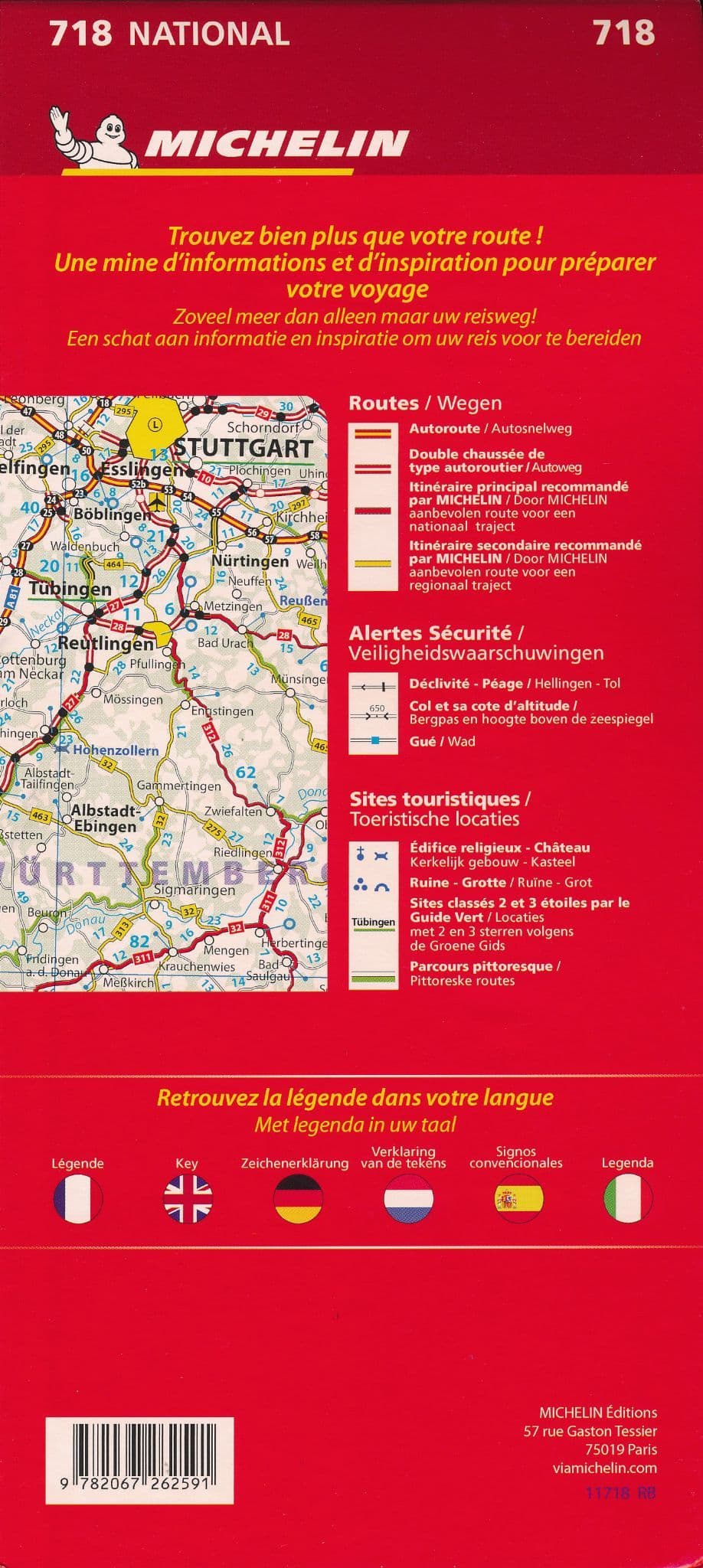 Updated annually, MICHELIN National Map Germany (map 718) will give you an overall picture of your journey thanks to its clear and accurate mapping scale 1:800,000.