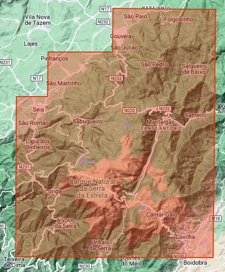 Aldeias | Alvôco da Serra | Bouça | Cabeça | Covilhã | Folgosinho | Gouveia | Lapa dos Dinheiros | Loriga | Mangualde da Serra | Manteigas | Melo | Nabais | Penhas da Saúde | Penhas Douradas | S.Romão | Sabugueiro | Sameiro | Sazes da Beira | Seia | Unhais da Serra | Vale do Rossim | Valezim | Vila Cova-à-Coelheira