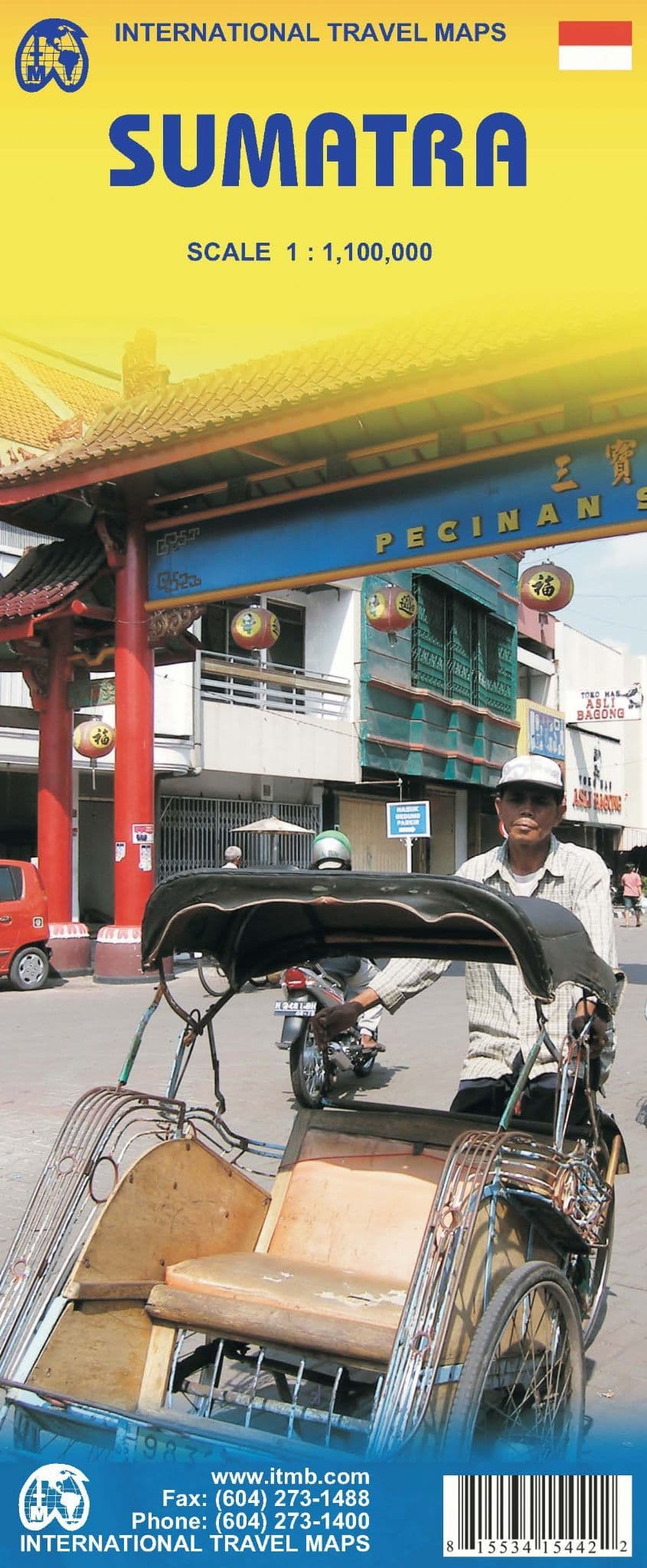 Sumatra at 1:1,100,000 on an indexed, double-sided map, with coverage of the southern part of the Malaysian Peninsula with Kuala Lumpur, plus street plans of Medan, Padang and Palembang. Coverage includes the Riau and Linggga archipelagoes and most of Bangka, plus the islands west of Sumatra: Simeulue, Tuangku and the Banyak Archipelago, Nias, Batu, Tanahmasa, Tanahbala, Soberut, Sipora, North and South Pagai, and Enggand.