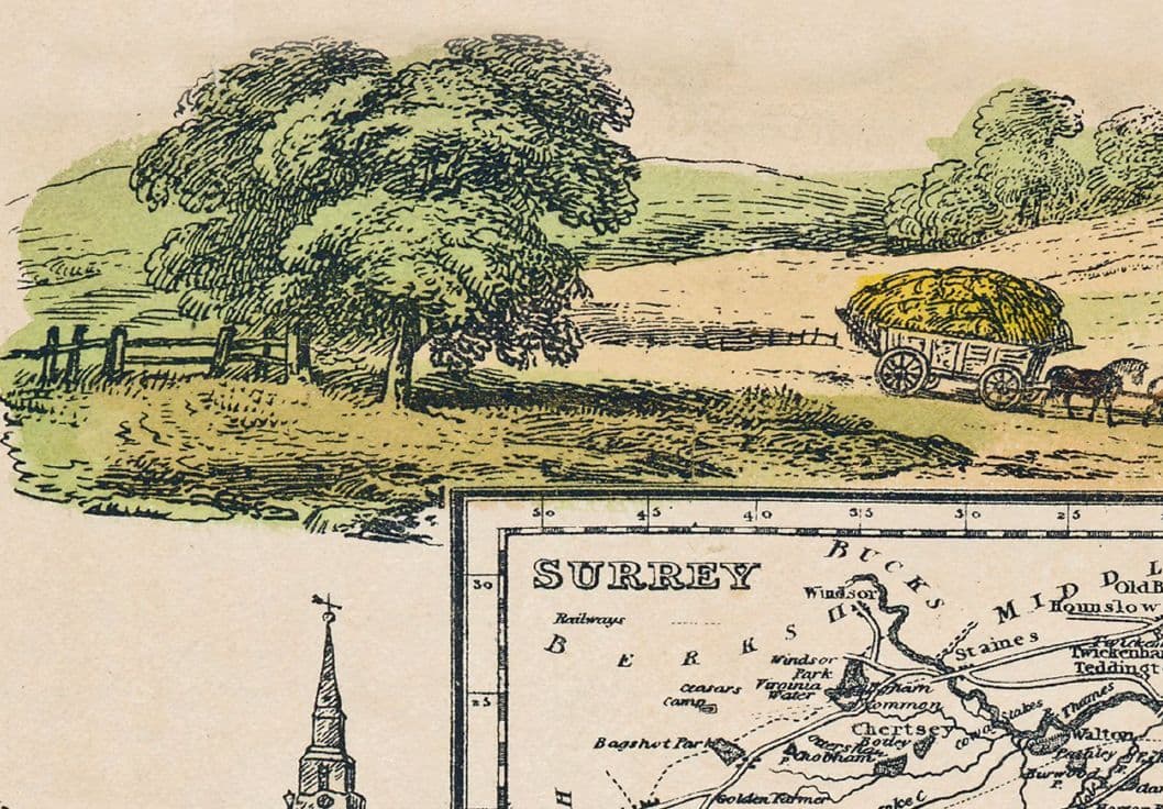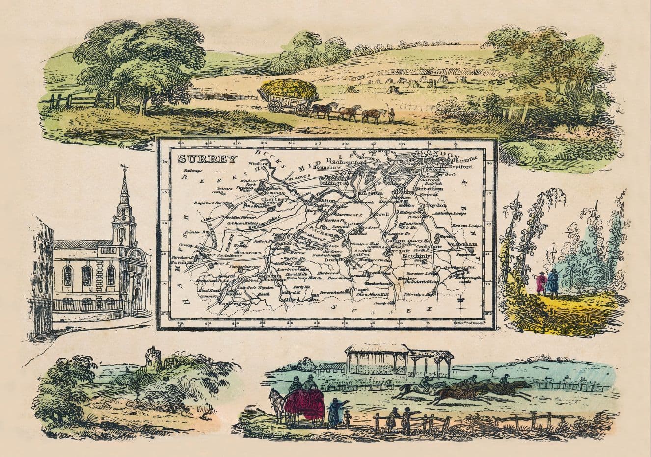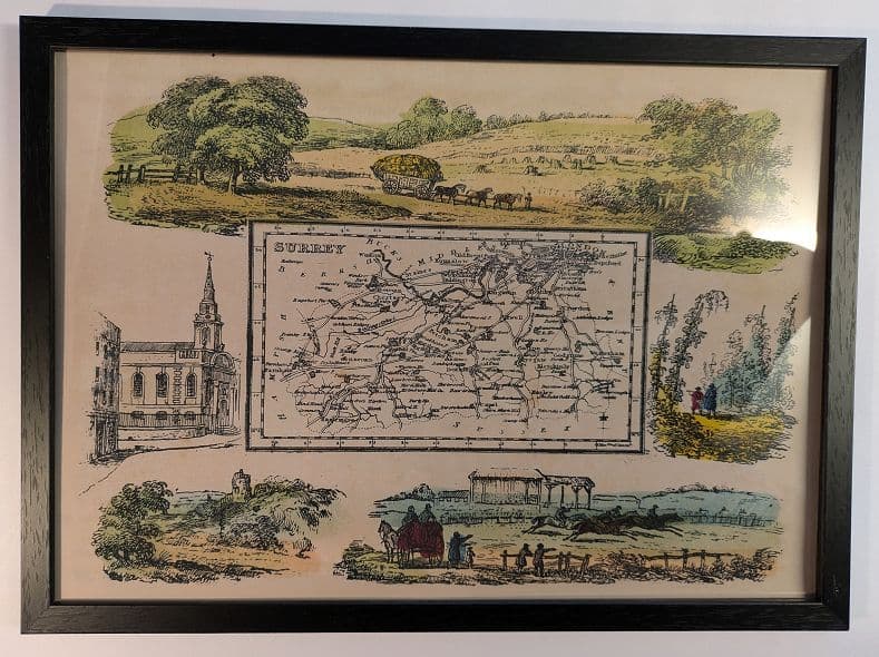 This is a Modern Reproduction A3 County Map with surrounding Vignettes.