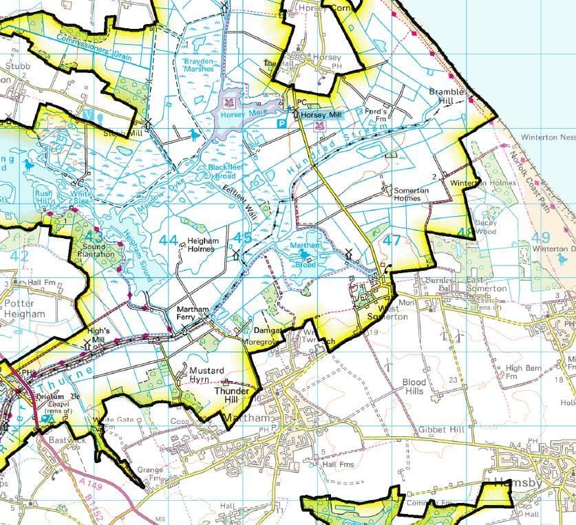 The map utilises the Ordnance Survey Landranger 1:50,000 mapping, the map depicts all the features you would expect to be shown on an Ordnance Survey Map, like Public Footpaths, tracks and roads, along with contours and places of interest. Camping and Caravan sites, Car Parks, Nature Reserves and Visitor Centres