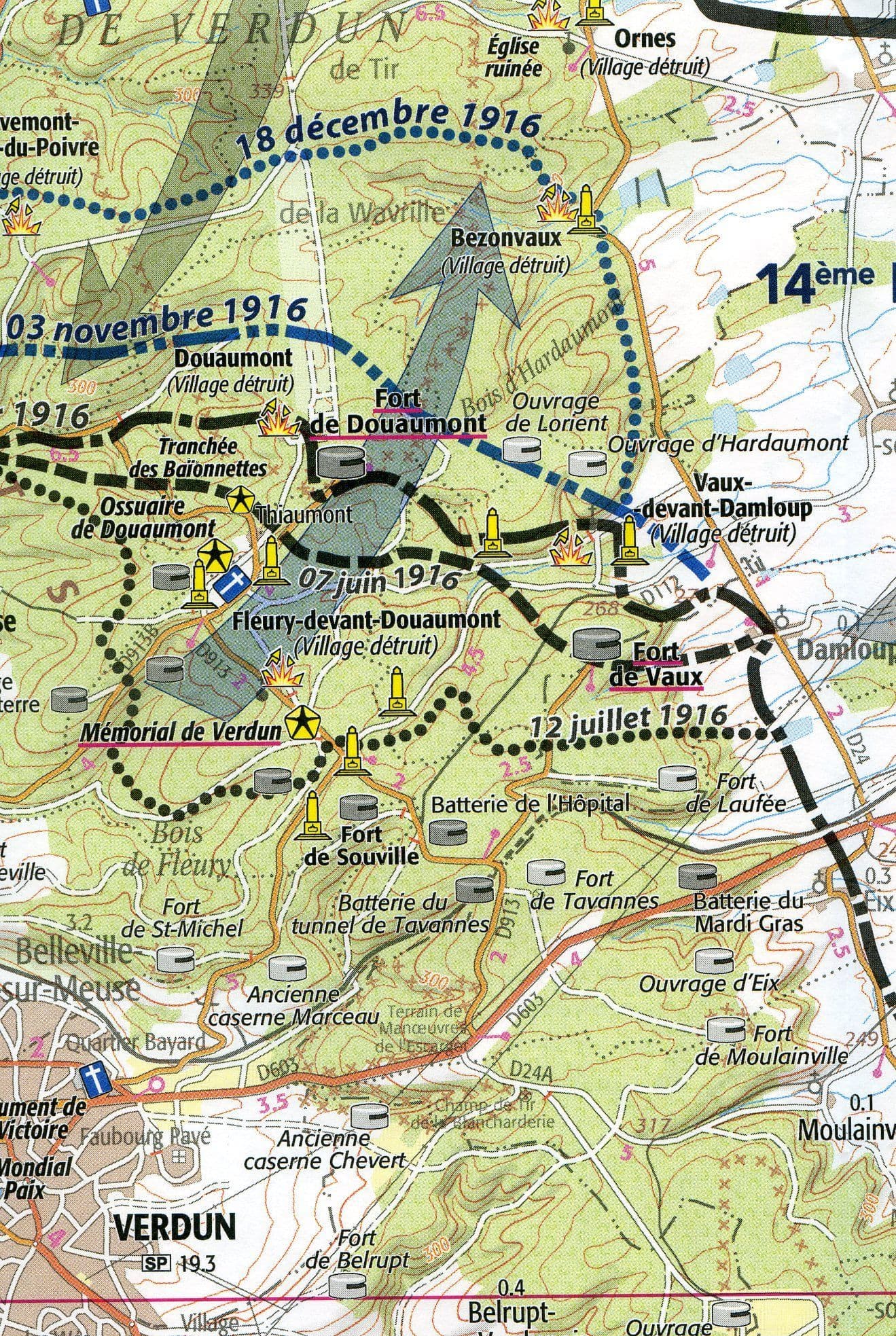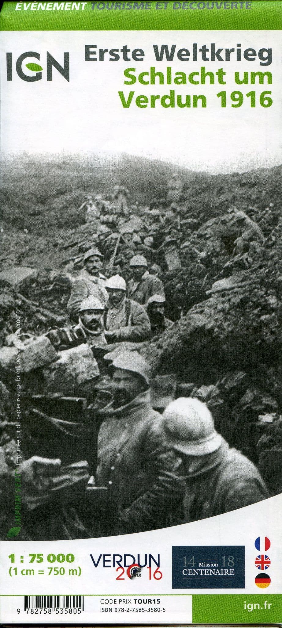 The Great War, World War I commemorative map published by IGN France which presents an overview of the Verdun