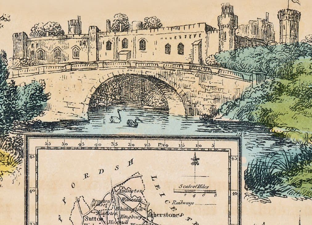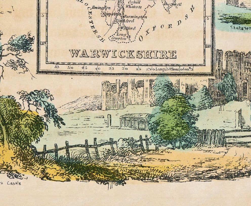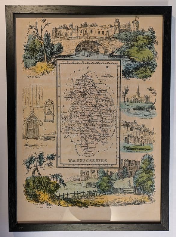 This is a Modern Reproduction A3 County Map with surrounding Vignettes.