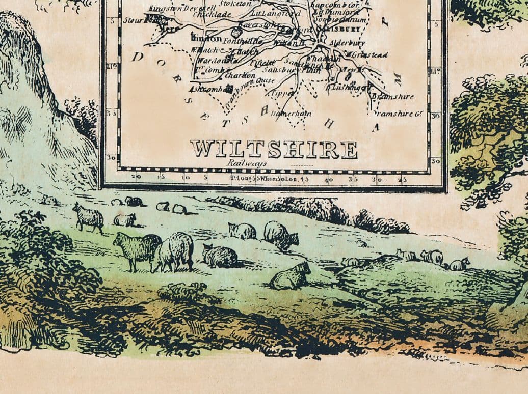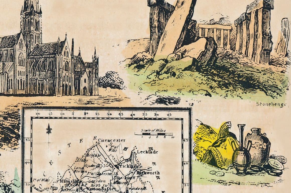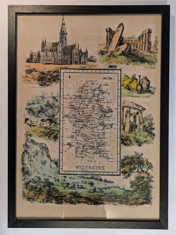 This is a Modern Reproduction A3 County Map with surrounding Vignettes.