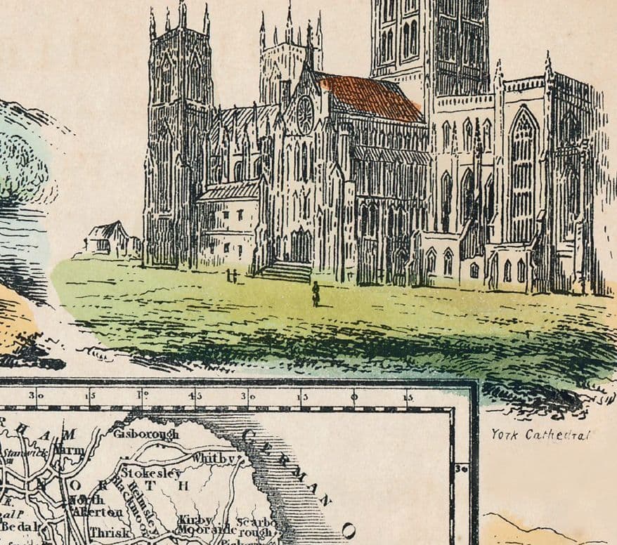 This is a Modern Reproduction A3 County Map with surrounding Vignettes.